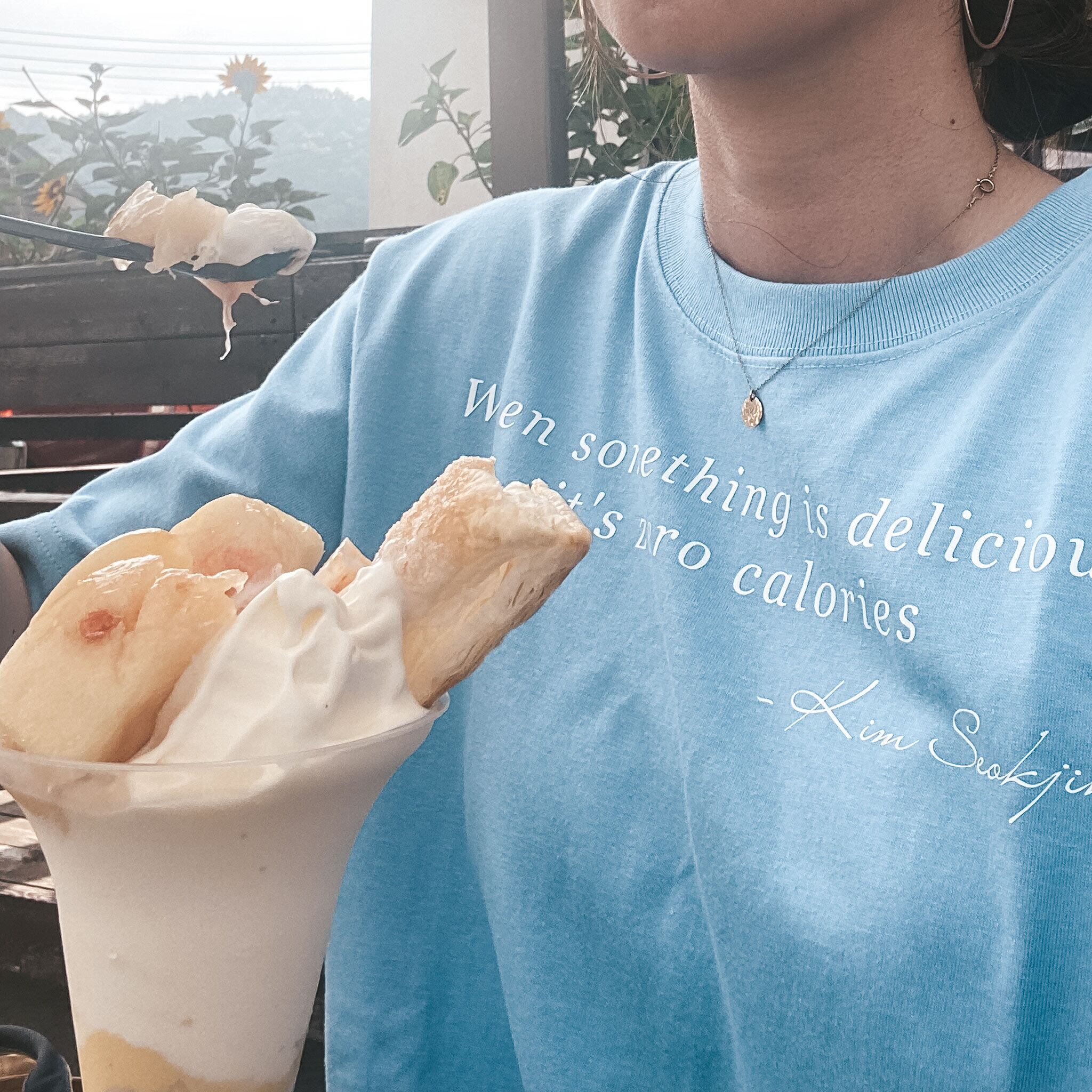 「美味しく頂いたらカロリーゼロ。」ジンの名言Tシャツです。