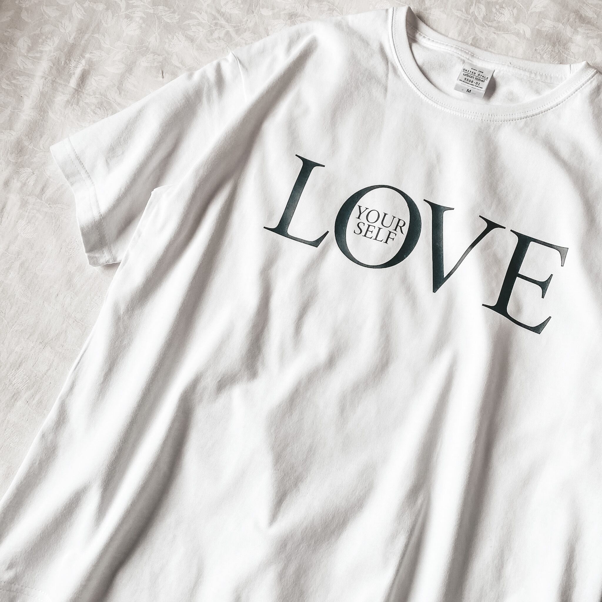ゆったりビッグシルエットが可愛いLove YourselfレタリングTシャツです。